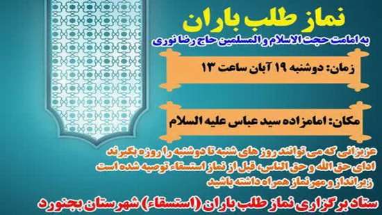 نماز طلب باران در بجنورد به امامت حجت الاسلام والمسلمین رضا نوری، نماینده ولی فقیه در استان و امام جمعه بجنورد